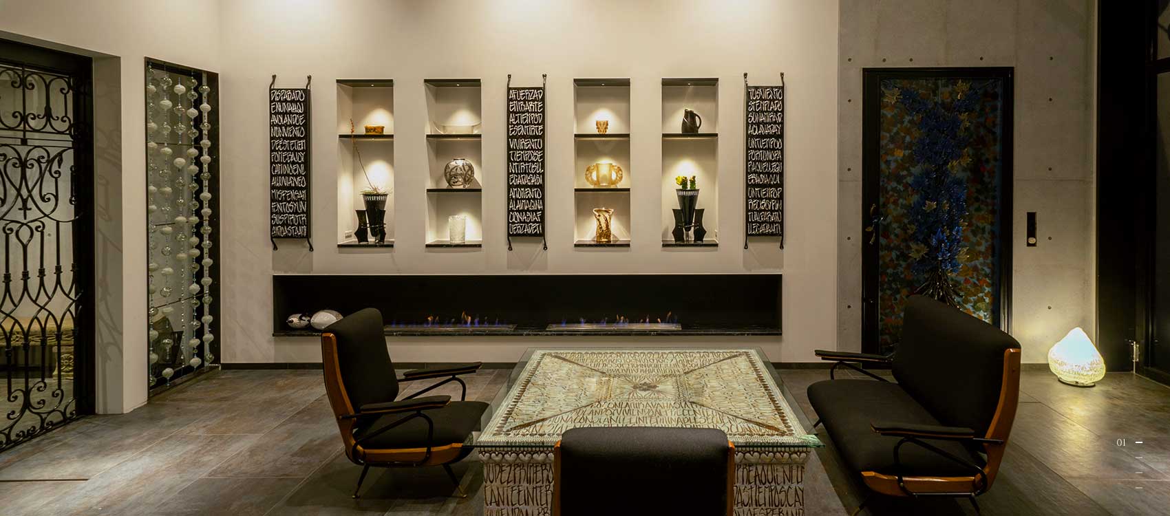 芸術性の高いメキシコ人デザイナーによる家具を中心に、イタリアや北欧のヴィンテージ家具が調和した空間。