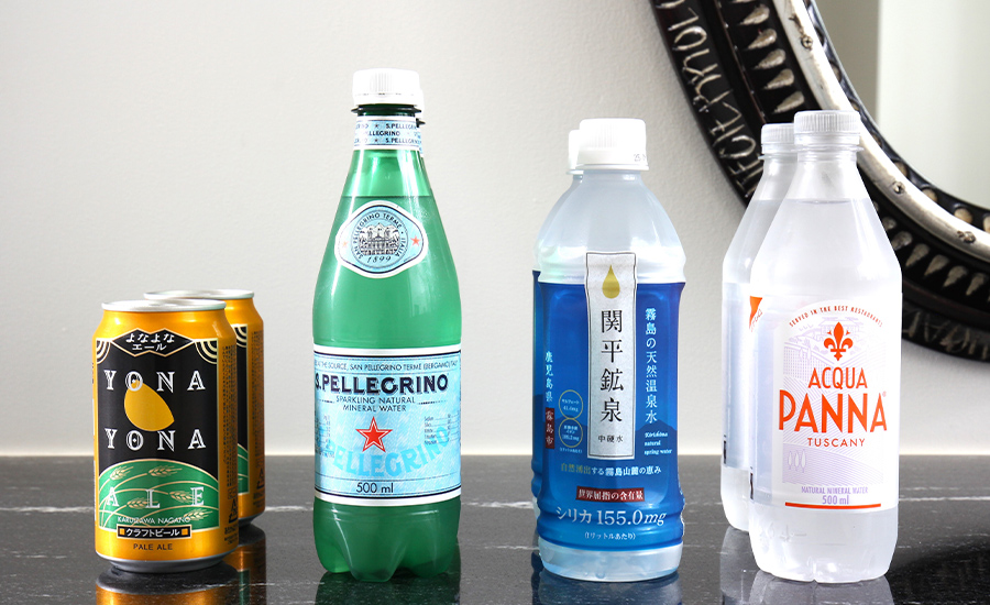 炭酸水やビールなどのお飲み物フリードリンクにてご用意いたしております。