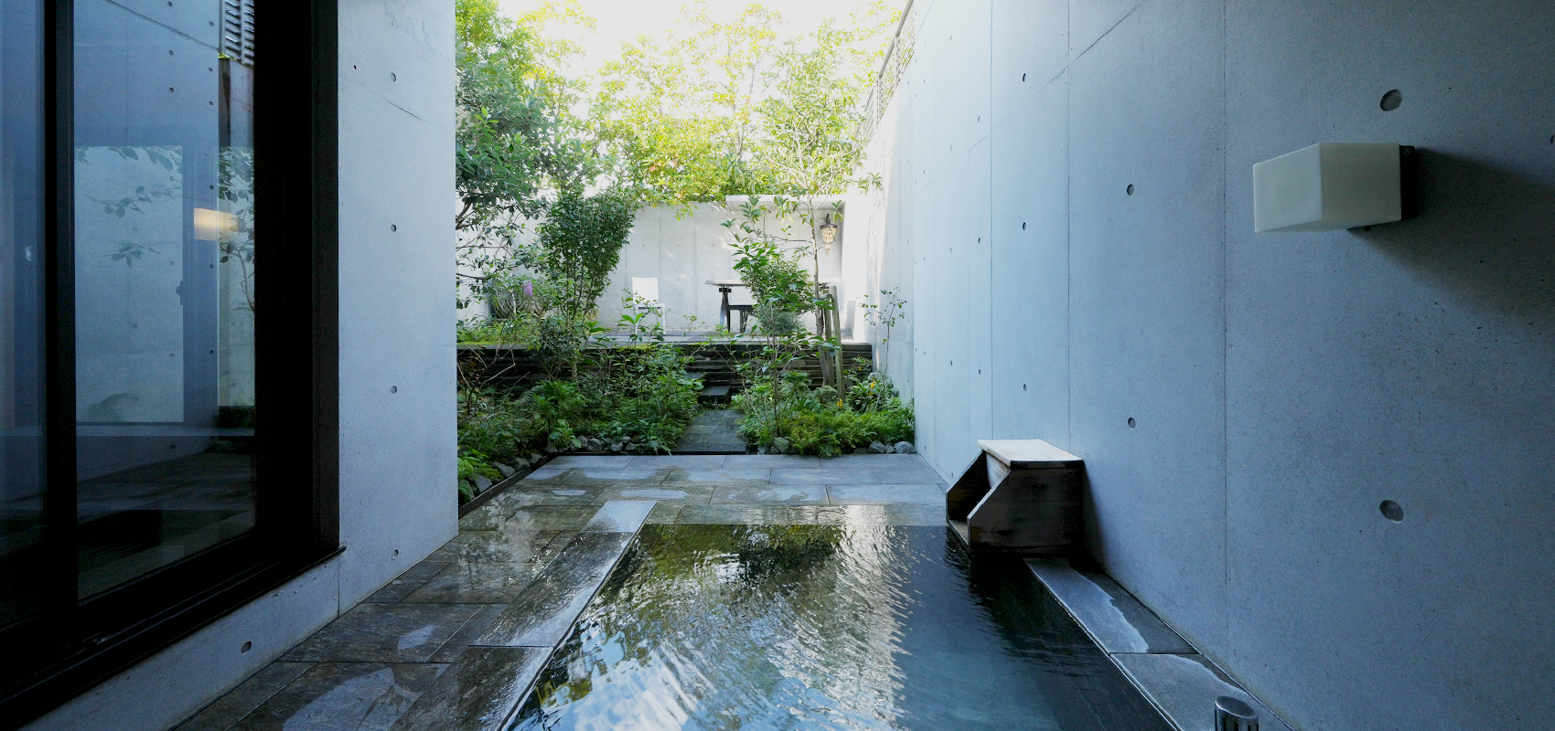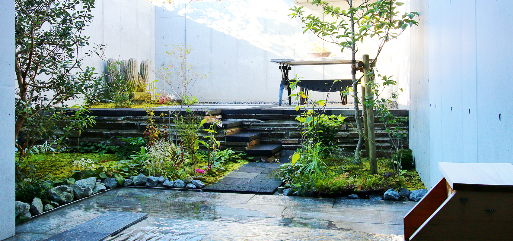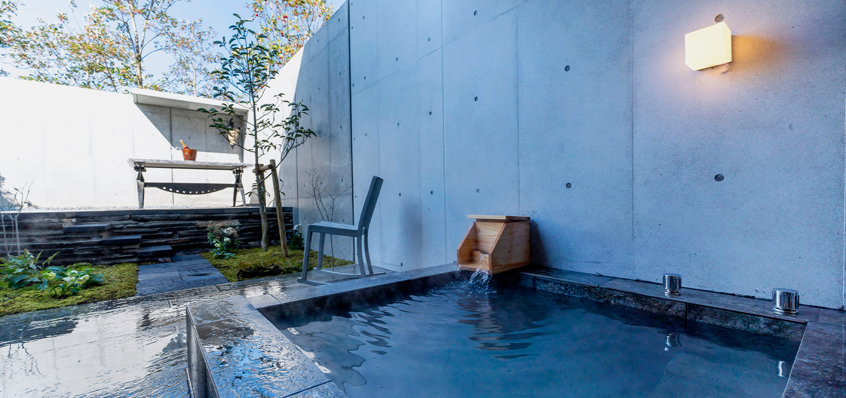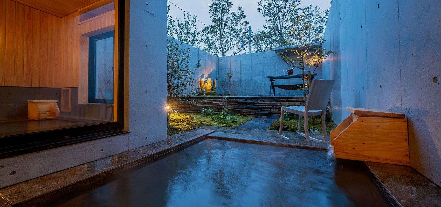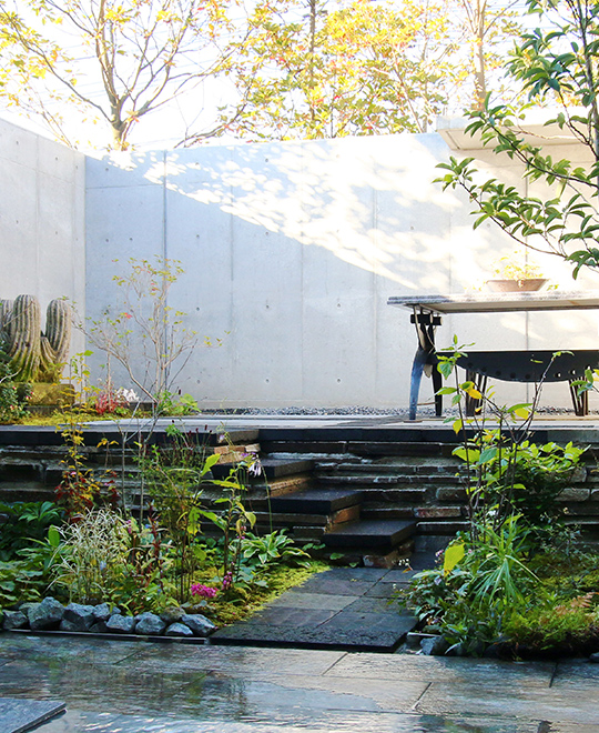 露天風呂から望めるお庭は、ガーデンデザイナーである
