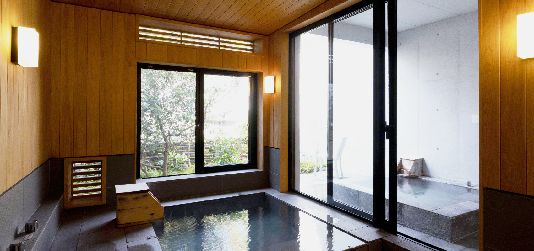 ヒノキが香る内風呂と、開放感あふれる露天風呂、2つの浴槽で心ゆくまで天然温泉をお愉しみください。
